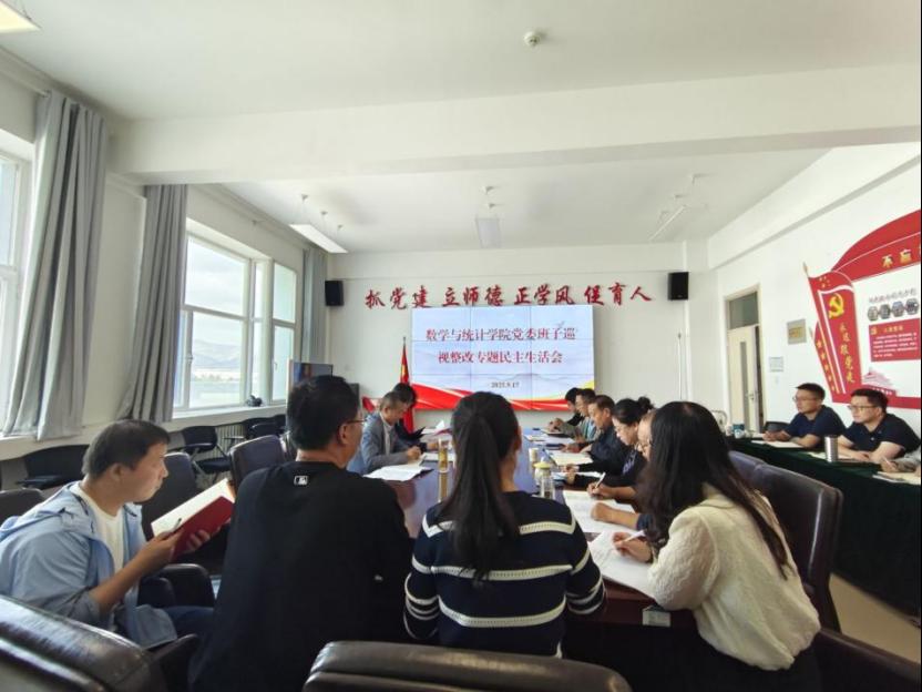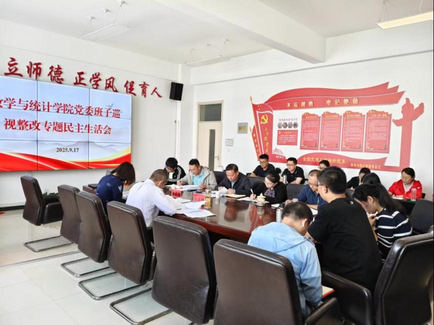 为深入贯彻落实党中央关于巡视工作的决策部署,切实做好省委巡视“后半篇文章”,按照校党委《关于认真开好巡视整改专题民主生活会的通知》要求,在充分准备的前提下,征得督导组同意,数学与统计学院党委于2025年9月17日(星期三)下午2:30召开了巡视整改专题民主生活会,督导组齐志强同志、吴青云同志监督指导会议,数学与统计学院党委委员参加会议,民主党派代表、无党派人士代表以及教师代表列席会议,会议由学院党委书记索南仁欠同志主持。