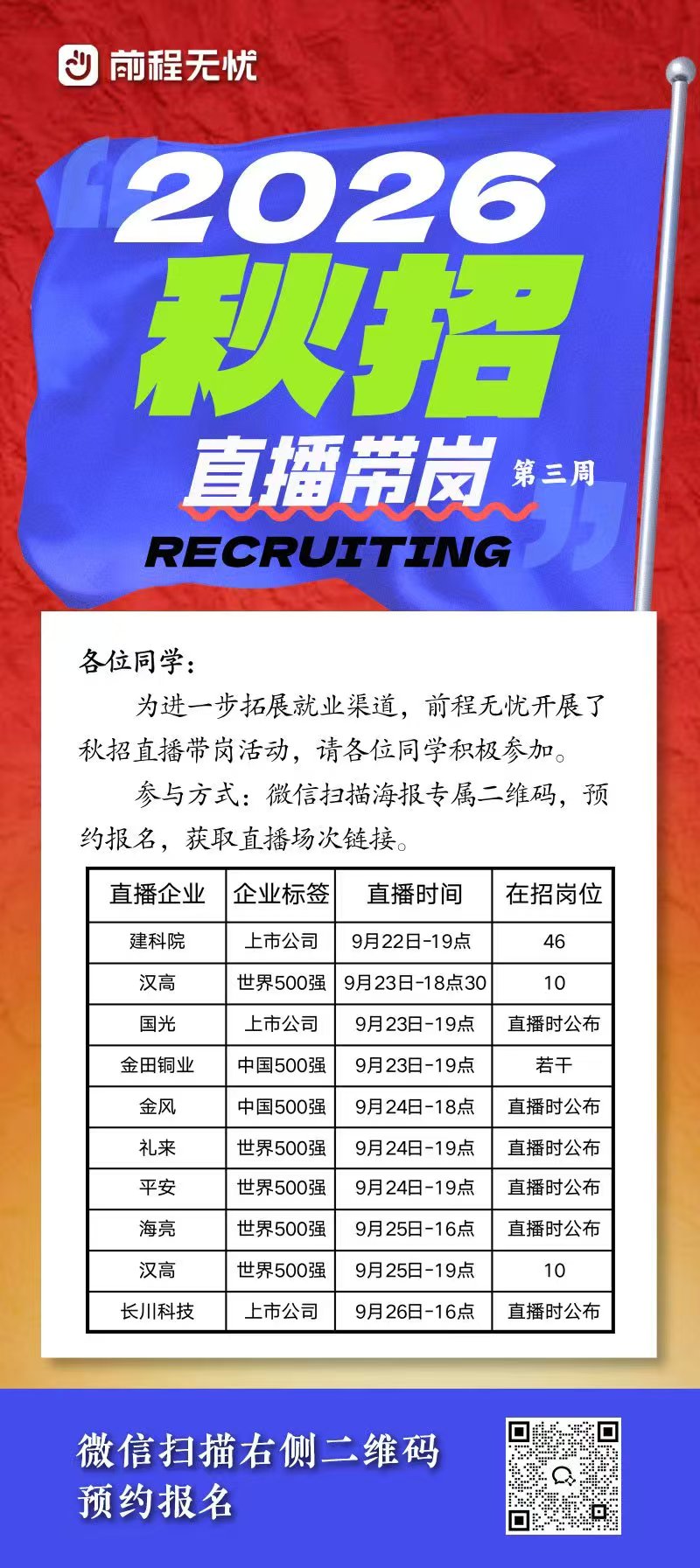 前程无忧2026秋招直播带岗(9月22日—26日)