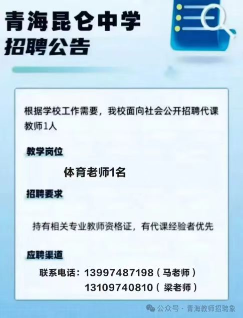 青海昆仑中学招聘公告(体育老师1名)-青海师范大学就业信息网