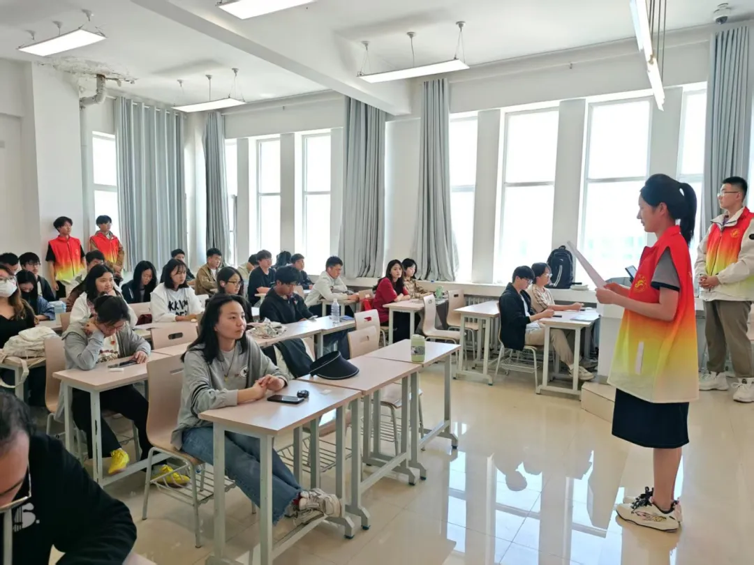 在各班开展团课期间,全体志愿者在西4楼集合,组织人吴霏再次确认分工,宣讲组六人,后勤组一人负责拍照保证活动正常开展。