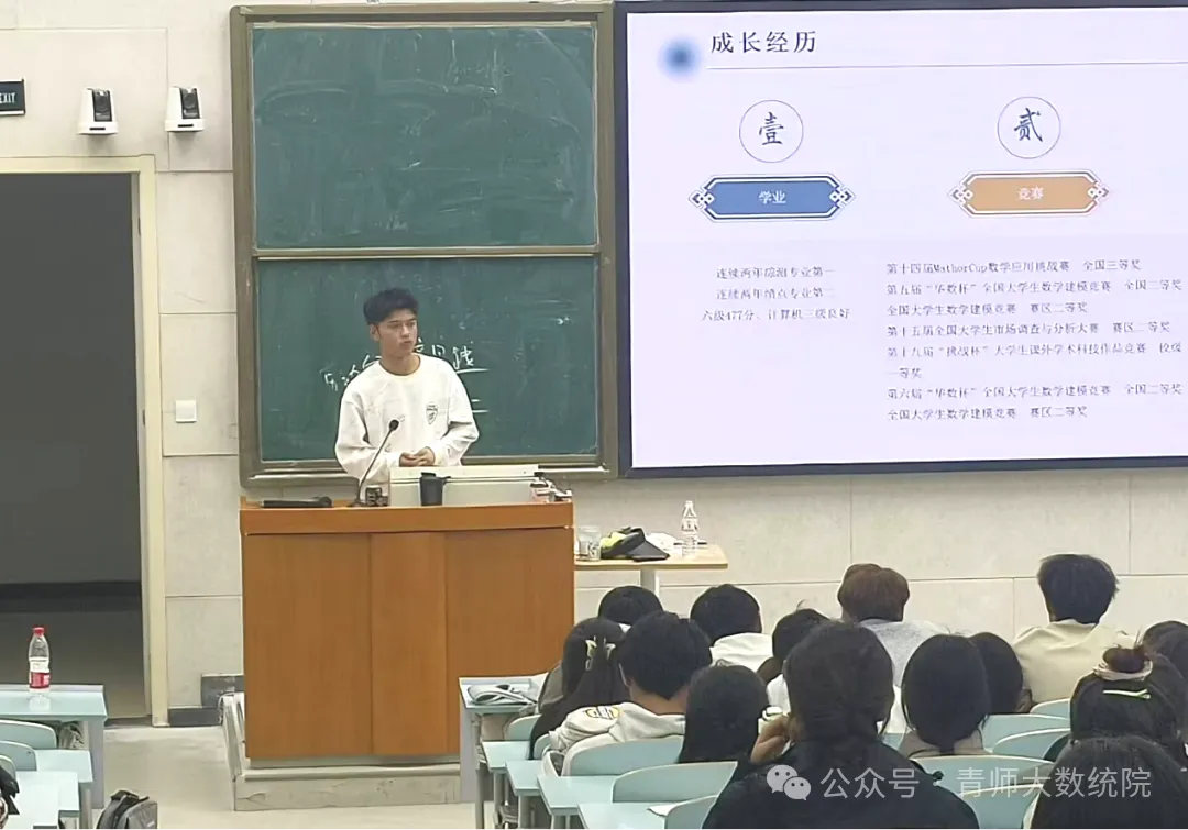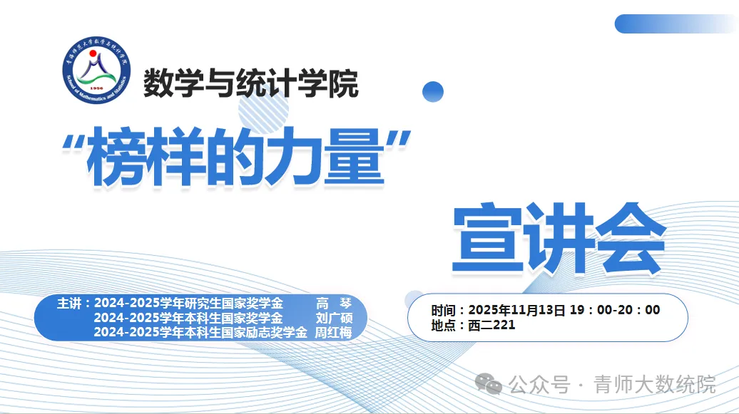我院遴选了2023级数学硕士(拟获研究生国家奖学金)、2023级统计学专业本科生刘广硕(拟获本科生国家奖学金)和2023级数学与应用数学专业本科生周红梅(拟获国家励志奖学金)作为宣讲人,分别于11月13日开展了1场专题讲座。讲座现场吸引学院与9号学生社区230余名2024、2025年级学生参与。宣讲人结合自身备战全国大学生数学建模竞赛、发表学术论文的经历,分享了时间管理、科研入门的实用技巧,互动环节中学生提问踊跃,累计解答学业困惑20余个,现场氛围热烈。